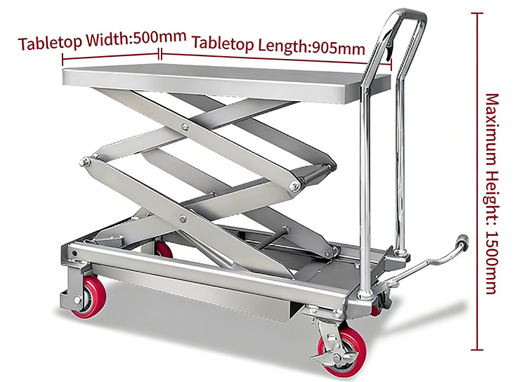 Грузовик с гидравлической подъемной платформой из нержавеющей стали грузоподъемностью 350 кг изготовлен из нержавеющей стали и обеспечивает общую устойчивость к коррозии и ржавчине, гибкость, безопасность, прочность и долговечность.